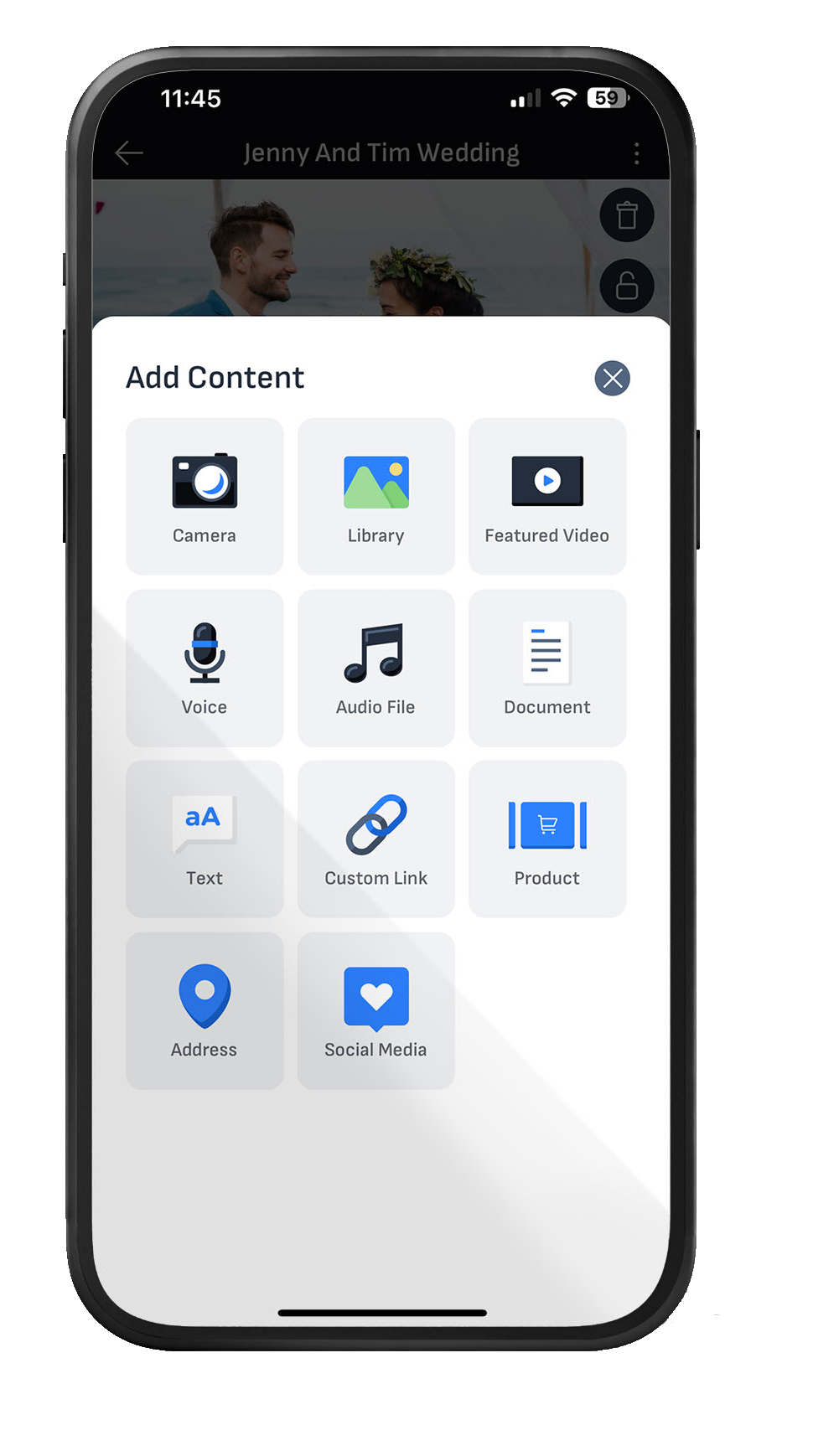 2- Record your voice, upload photos, videos, and leave a custom message.