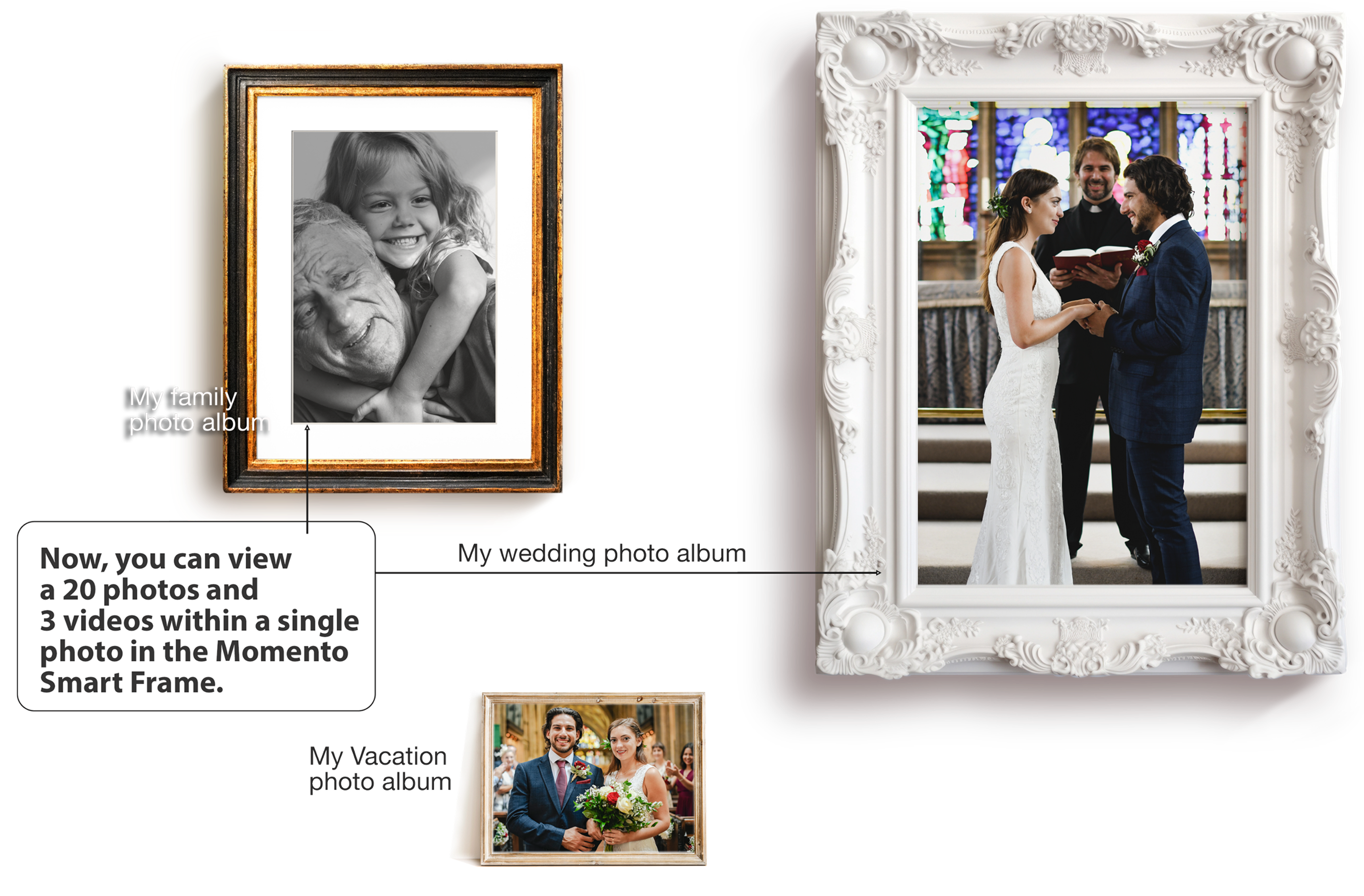 Imagine 30 years from now, others scanning your photo to unlock your wedding album, vacation memories, baby pictures, and videos of the life you've shared together all in a single photo with Momento Smart Frame.